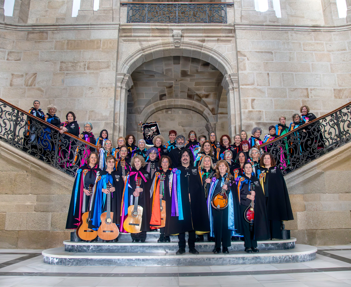 The Rondalla "SO ELAS" was formed by a group of women who enjoy singing at Café Sevilla, which is run by Helga and Carlos. This café serves as a meeting place for musicians and individuals who want to sing, all while preserving the city's rich traditions. The primary purpose of this Rondalla is to promote the presence of women in social and cultural areas where they are often underrepresented. Among the songs they perform, “Mis Derechos de Mujer” by Helena Gadea stands out, touching the most intimate emotions of its listeners. The Rondalla was officially established on February 12, 2019. With the support of the Minister of Culture, Suso Basterrechea, we introduced ourselves to the public in Ferrol at the beautiful Jofre Theater, which sold out tickets in just half an hour. At this event, we were honored to have "Niurka Carbonell" directing us and "SUSO BALADO" as our Honorary Godfather. He was a beloved figure who taught many women to play guitar and sing in the city’s bars. Since our presentation, we have made numerous appearances in audiovisual media, including TVG, radio, and newspapers. Most of our performances have been at associations, city festivals, and we have had the opportunity to collaborate with several nonprofit organizations, such as nursing homes, the Association "AFINOR" for fibromyalgia, the Gala against Cancer, the "The Illusion of a Toy" campaign, and food collection for the Economic Kitchen. In 2020, under the direction of our current Director "FRANK RODRIGUEZ", we presented our Official Godfather "DANIEL RÍOS" (who continued in this role in 2021). He was the first to accompany us on the Night of the Peppers, although we faced some challenges. Due to health concerns, our activities were limited that year. Despite the harsh restrictions, our Rondalla continued to rehearse through tutorials. None of us are professionals, and almost all of us picked up an instrument for the first time. We had to work diligently, but thanks to the dedication and patience of our dear Director, along with his encouragement and motivation, we have been steadily improving. Whenever we have the opportunity to participate in city activities, we eagerly take part. In 2021, as the pandemic conditions eased, we began to perform in the streets of Ferrol and the surrounding areas.
